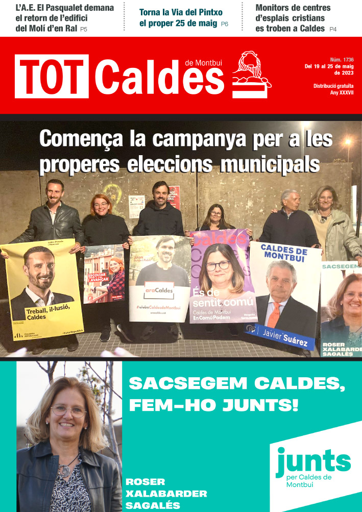TOT Caldes · Del 19 al 25 de maig de 2023 · Núm. 1736 totcaldes / 18 Mai, 2023 Fes clic a la imatge per veure la revista sencera. Comparte esto: Share on X (S'obre en una nova finestra) X Comparteix al Facebook (S'obre en una nova finestra) Facebook M'agrada S'està carregant...