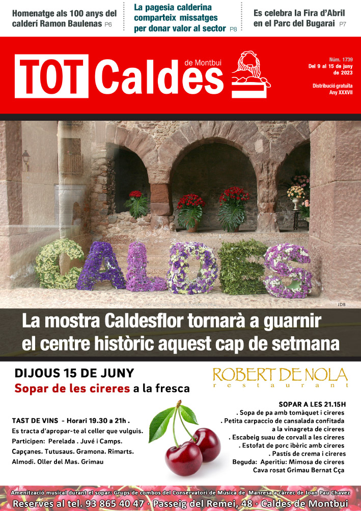 TOT CALDES · Del 9 al 15 de juny de 2023 · Núm. 1739 totcaldes / 8 Juny, 2023 Fes clic a la imatge per veure la revista sencera. Comparte esto: Share on X (S'obre en una nova finestra) X Comparteix al Facebook (S'obre en una nova finestra) Facebook M'agrada S'està carregant...