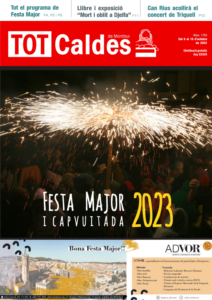 TOT Caldes especial Festa Major · Del 6 al 19 d’octubre de 2023 · Núm. 1753 totcaldes / 5 Octubre, 2023 Fes clic a la imatge per veure la revista sencera. Comparte esto: Share on X (S'obre en una nova finestra) X Comparteix al Facebook (S'obre en una nova finestra) Facebook M'agrada S'està carregant...