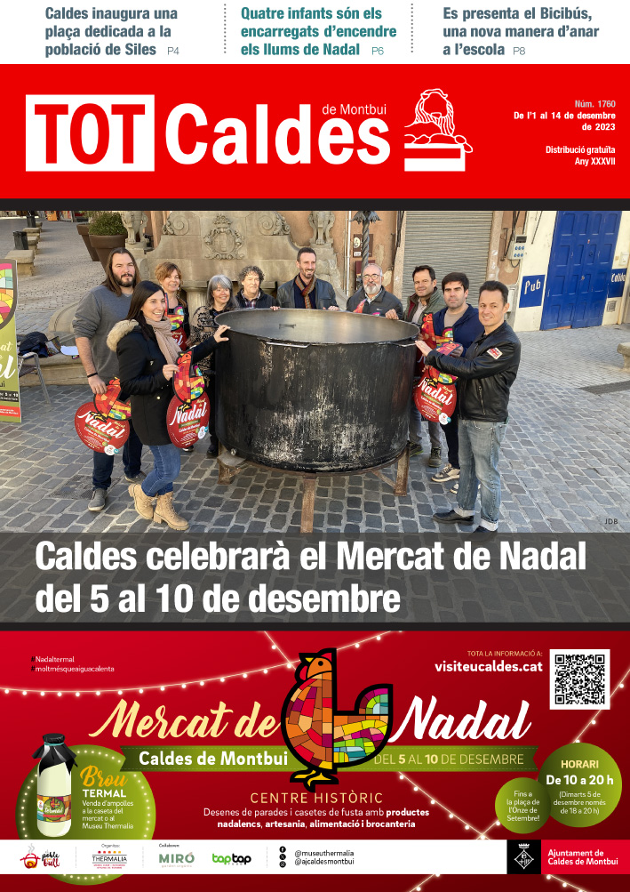 TOT Caldes · De l’1 al 14 de desembre de 2023 · Núm. 1760 totcaldes / 30 Novembre, 2023 Fes clic a la imatge per veure la revista sencera. Comparte esto: Share on X (S'obre en una nova finestra) X Comparteix al Facebook (S'obre en una nova finestra) Facebook M'agrada S'està carregant...