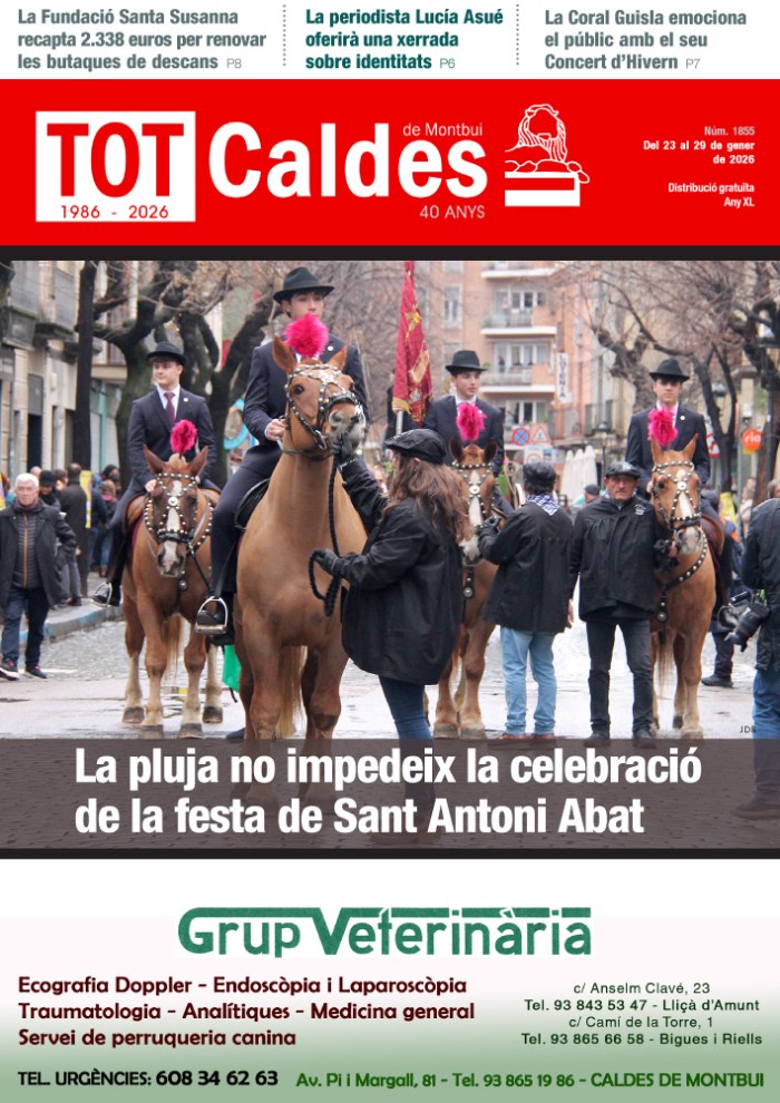 TOT Caldes · Del 23 al 29 de gener de 2026 · Núm. 1855 totcaldes / 23 gener, 2026 Fes clic a la imatge per veure la revista sencera. Comparte esto: Share on X (S'obre en una nova finestra) X Comparteix al Facebook (S'obre en una nova finestra) Facebook M'agrada S'està carregant...