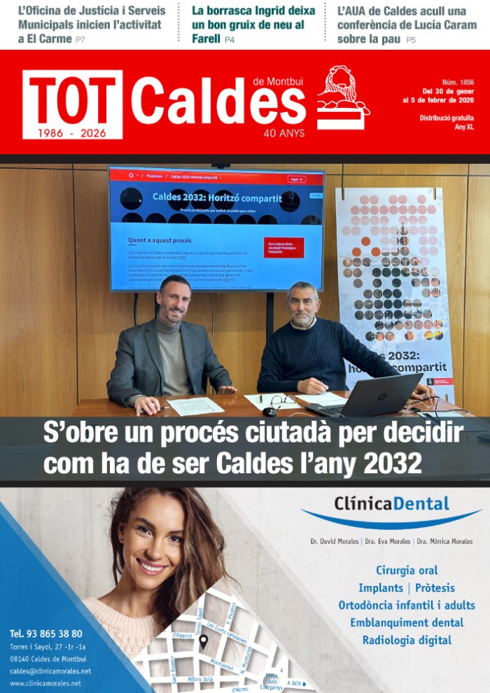 TOT Caldes · Del 30 de gener al 5 de febrer de 2026 · Núm. 1856 totcaldes / 29 gener, 2026 Fes clic a la imatge per veure la revista sencera. Comparte esto: Share on X (S'obre en una nova finestra) X Comparteix al Facebook (S'obre en una nova finestra) Facebook M'agrada S'està carregant...